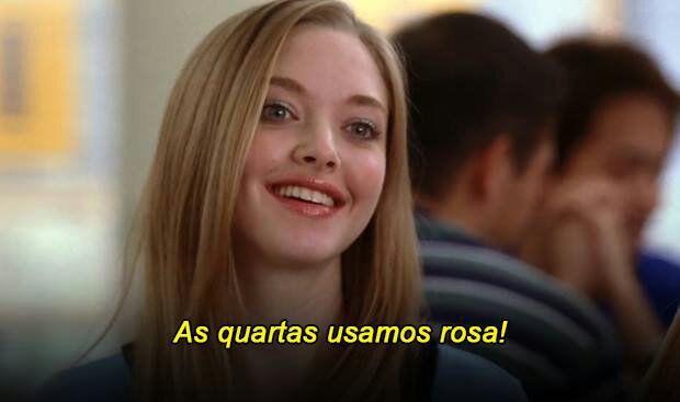 É preciso vestir rosa às quartas-feiras. Use uma camisa rosa, saia/shorts ou um vestido leve e acinturado rosa. Uma boa opção é usar camisa rosa e parte de baixo branca, com acessórios rosa e neutros.